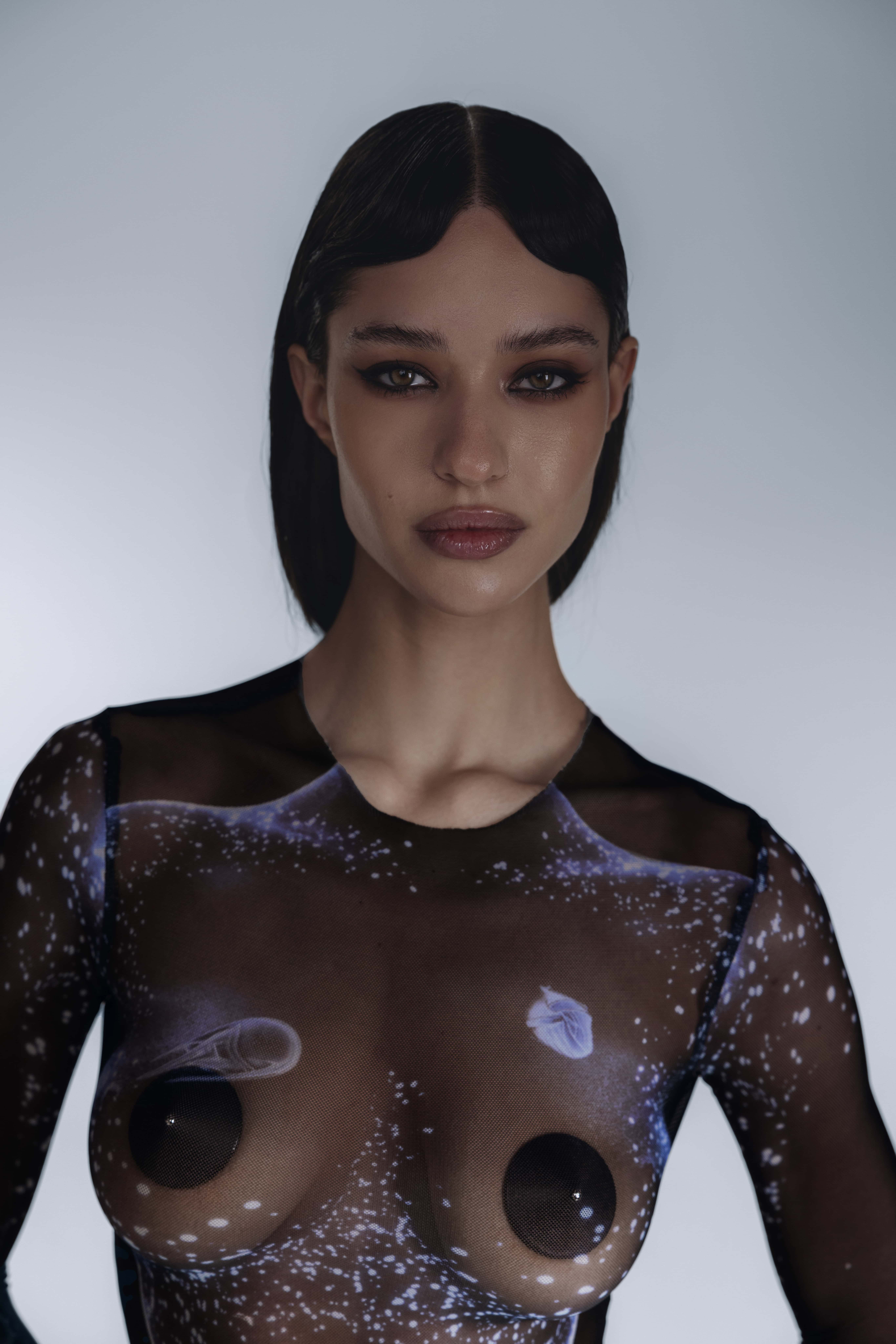 Our designs embody the beauty of this transformed corporeality — a fusion of the feminine form and cybernetic structures, symbolizing a timeless futurism in which past and future dissolve into the present. Our clothing becomes an artifact that transcends any specific era.